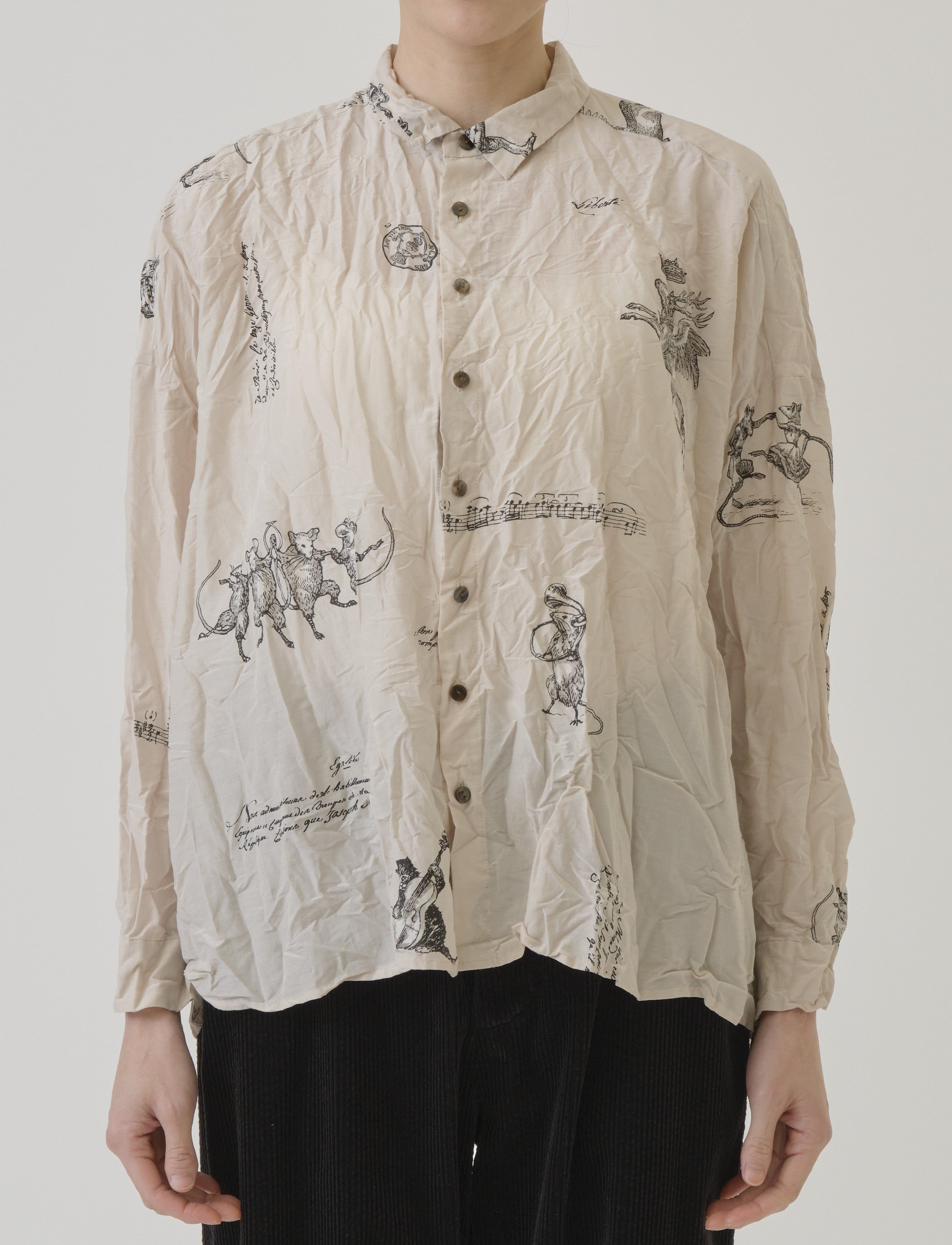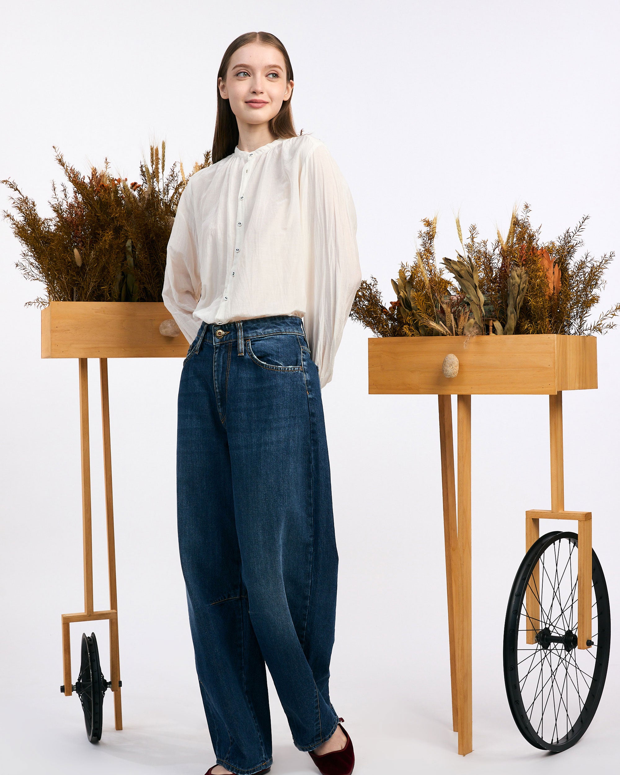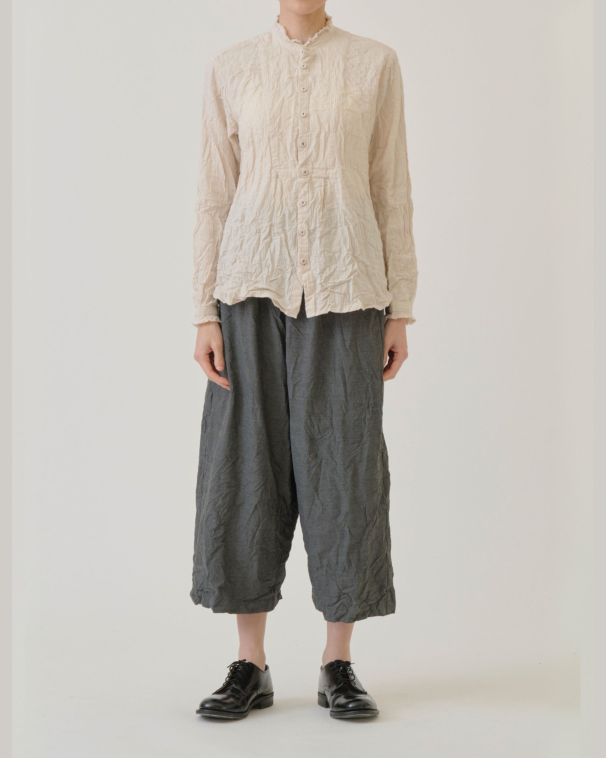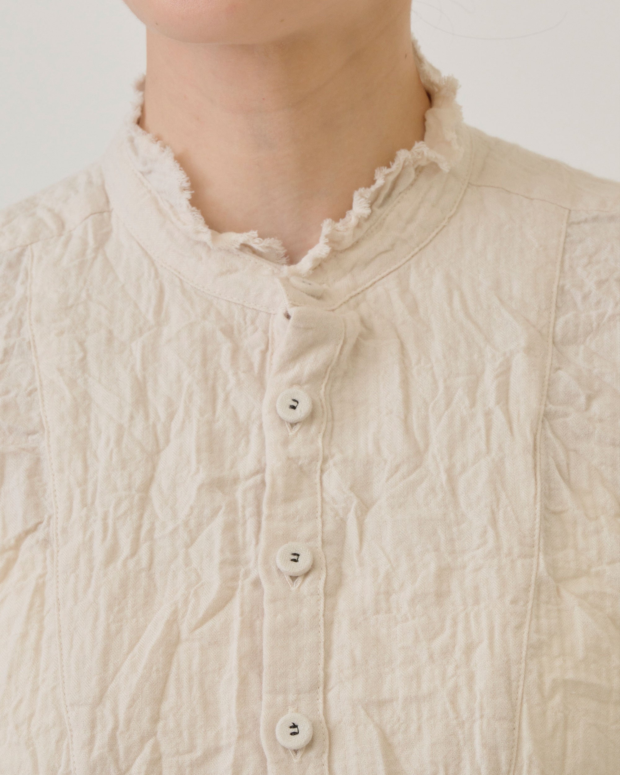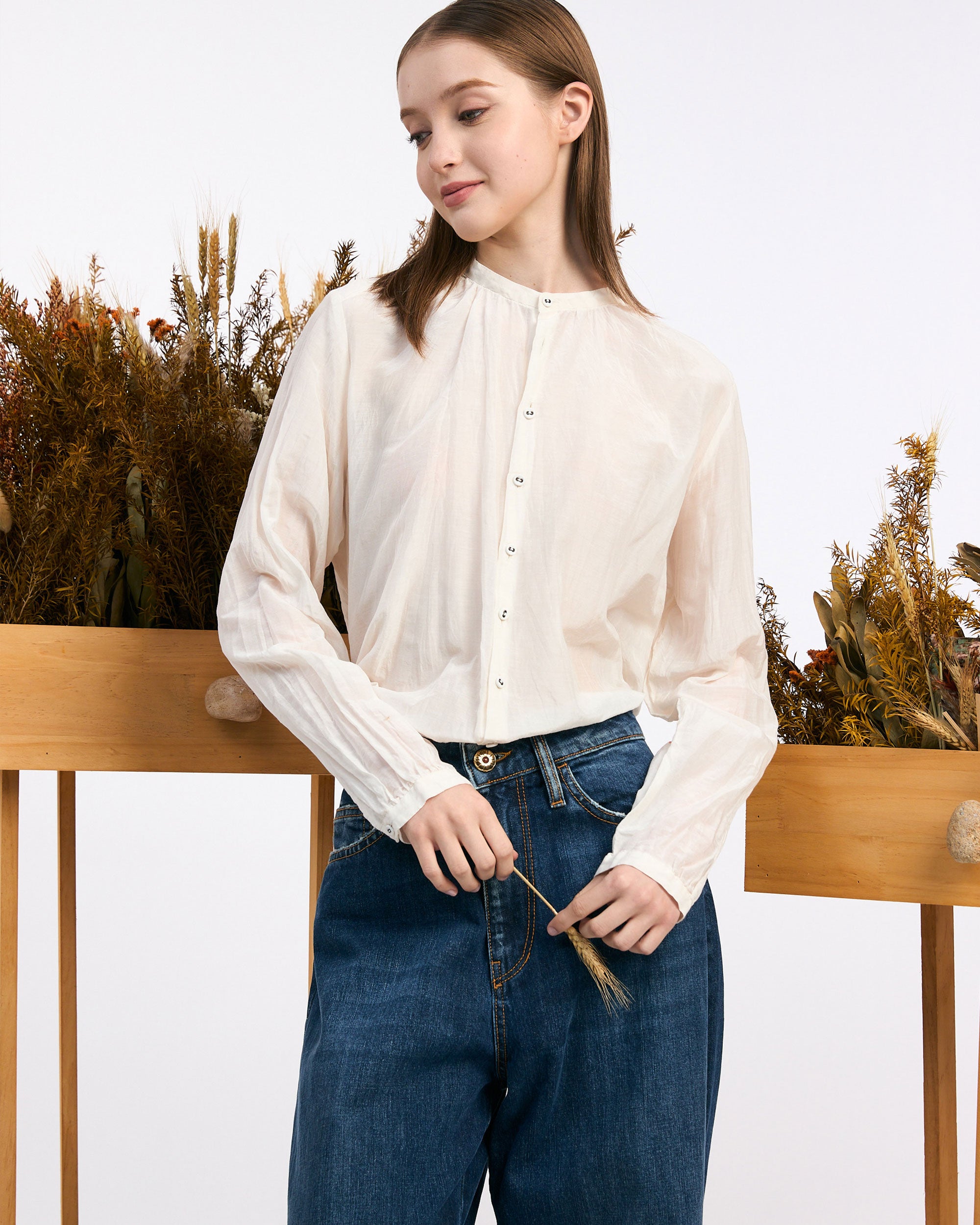 PAS DE CALAIS Botanical Dye Cotton Silk Lawn Stand Collar Blouse