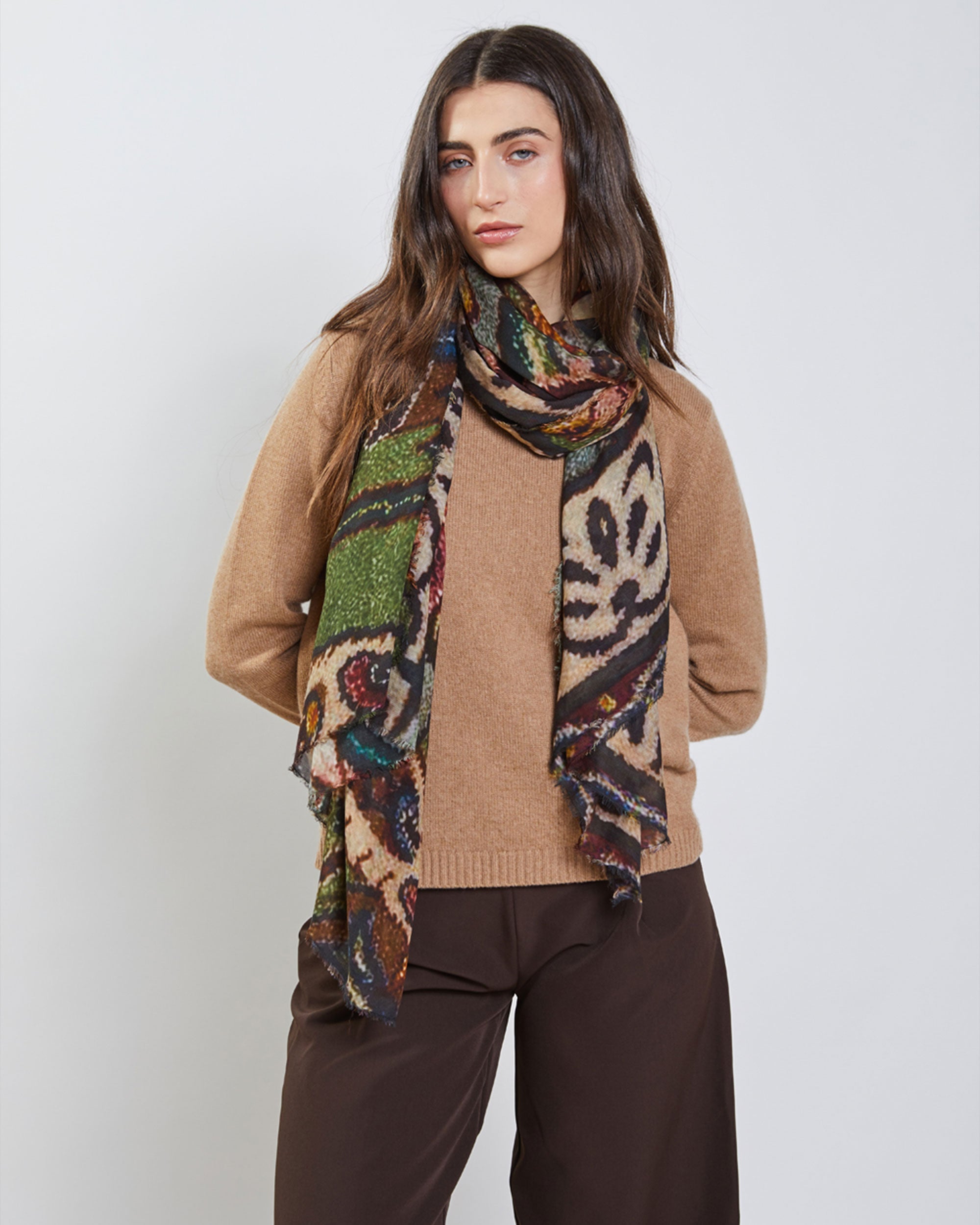 The Italian label Faliero Sarti was founded in Italy in 1949, the scarves and shawls are designed and produced following Italian tradition. The creative director, Monica Sarti, is known for creating unique accessories for fashion-conscious women and men.