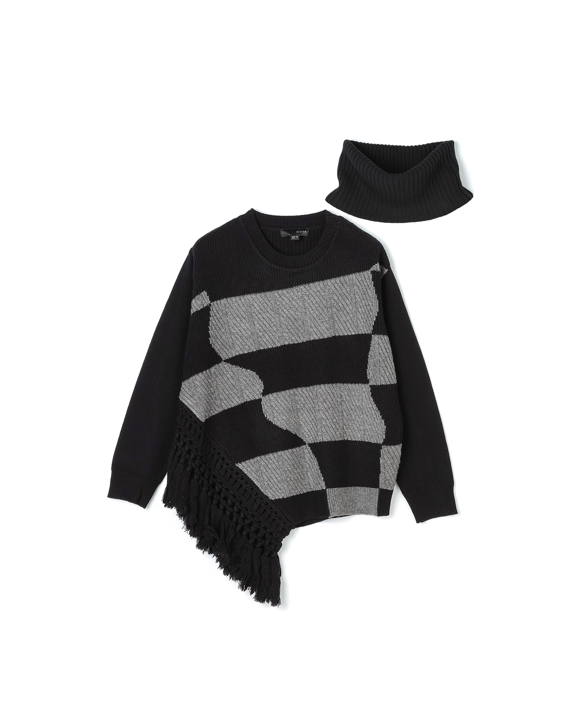 Édition de Paris Crochet Fringe Drap Side Knit Top