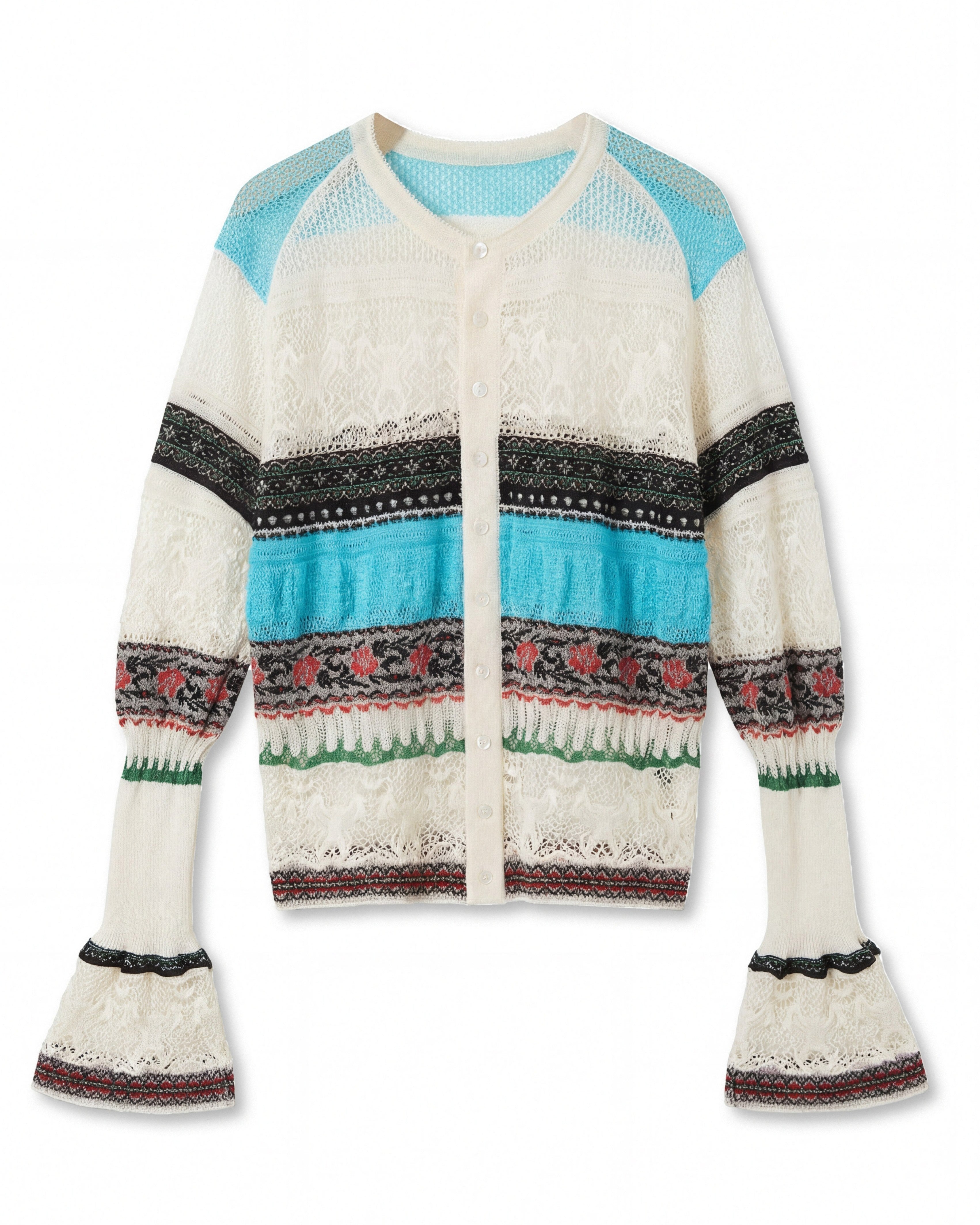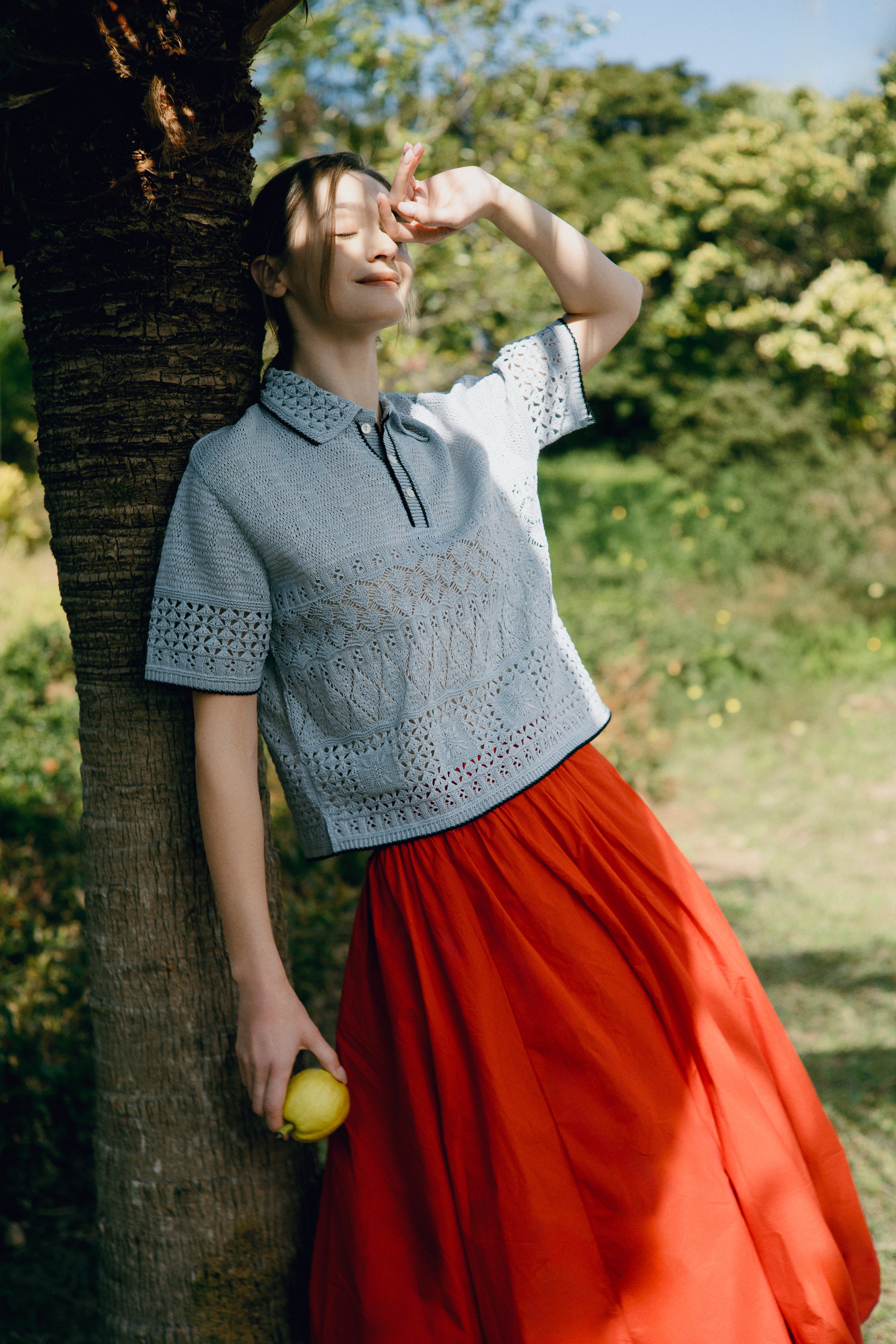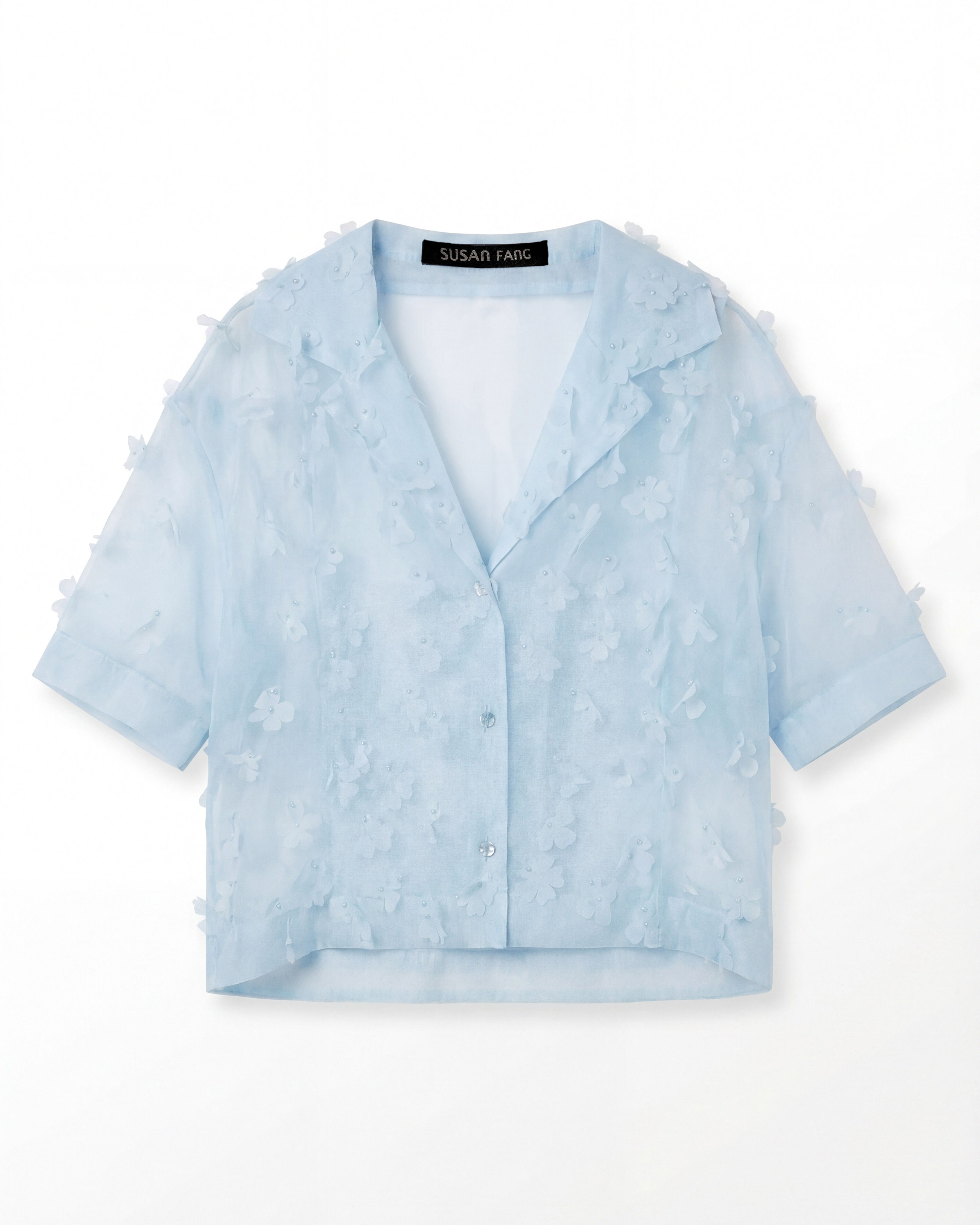 Pas de Calais, the Japanese brand known for its unique fabrics made with natural dyes, presented floral dresses in light blue tones, exuding a relaxed, vacation-ready vibe.