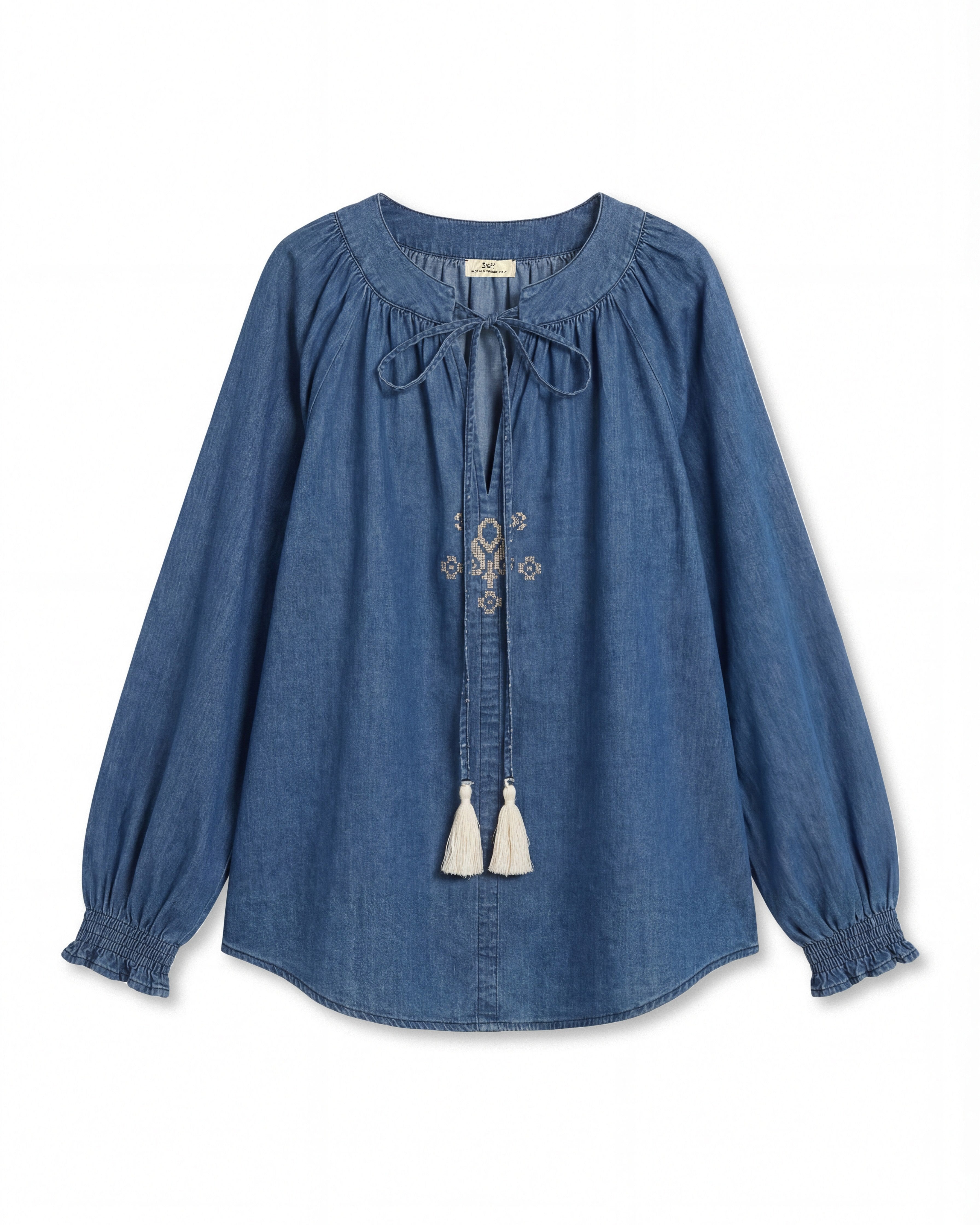 Shaft Jeans, the Italian organic denim brand, created a series of chic yet elegant Boho Denim pieces, adorned with tassels, drawstrings, and embroidery. Perfectly echoes the free spirit of Bohemia with slightly rugged texture of the denim.